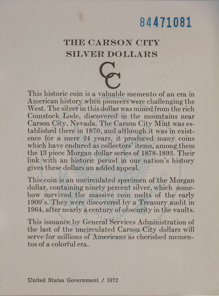 1884-CC Morgan Dollar - Carson City GSA - Choice Brilliant Uncirculated w/ Box & CoA