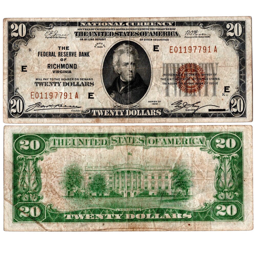 1929 $20 Richmond Federal Reserve Bank Note Fr. 1870-E - Fine